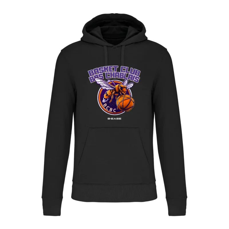 Pour faciliter la personnalisation, ce hoodie ne comporte pas d’étiquette de marque au col, uniquement une puce de taille discrète. Le hoodie classique du Basket Club Bas Chablais est donc le choix idéal pour ceux qui recherchent un vêtement stylé, confortable et respectueux de l’environnement.