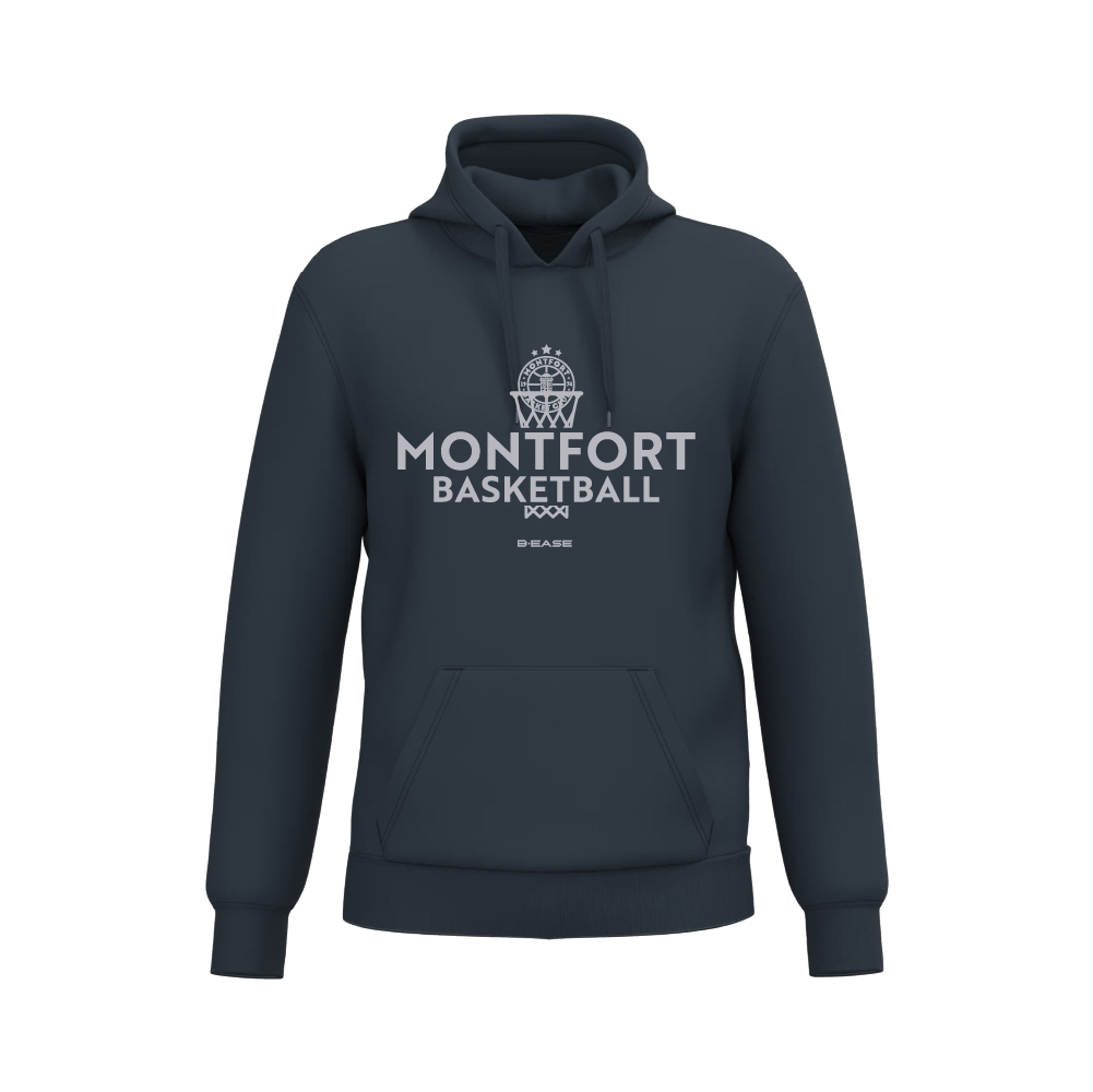 Sweat à capuche Montfort en marine, alliant confort et style pour tous. Disponible dans toutes les tailles, il est parfait pour afficher votre passion pour le Montfort Basket Club. Idéal pour les journées fraîches, il offre chaleur et douceur. Rejoignez la communauté avec ce vêtement incontournable!